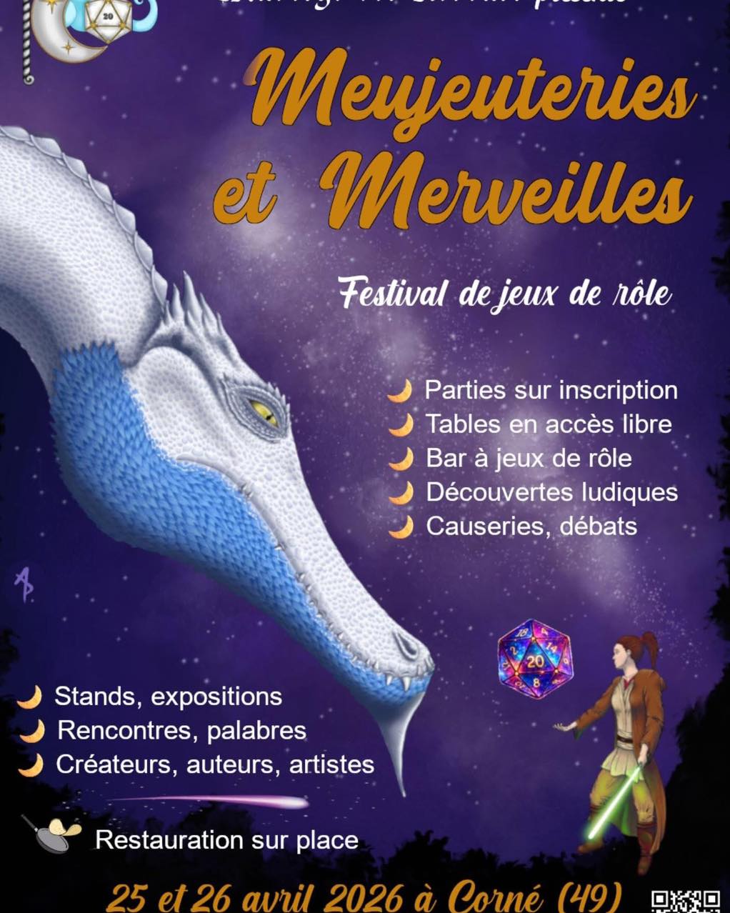 5 avril 2026L’auberge des rêveurs : https://laubergedesreveurs.fr/ organise une convention à Corné dans le 49. Je serai de la partie bien sûr. Pour s’inscrire aux parties et faire partie de l’aventure https://www.conventions-rolistes.org/evenement/54/Festival%20Meujeuteries%20et%20Merveilles/programme.html