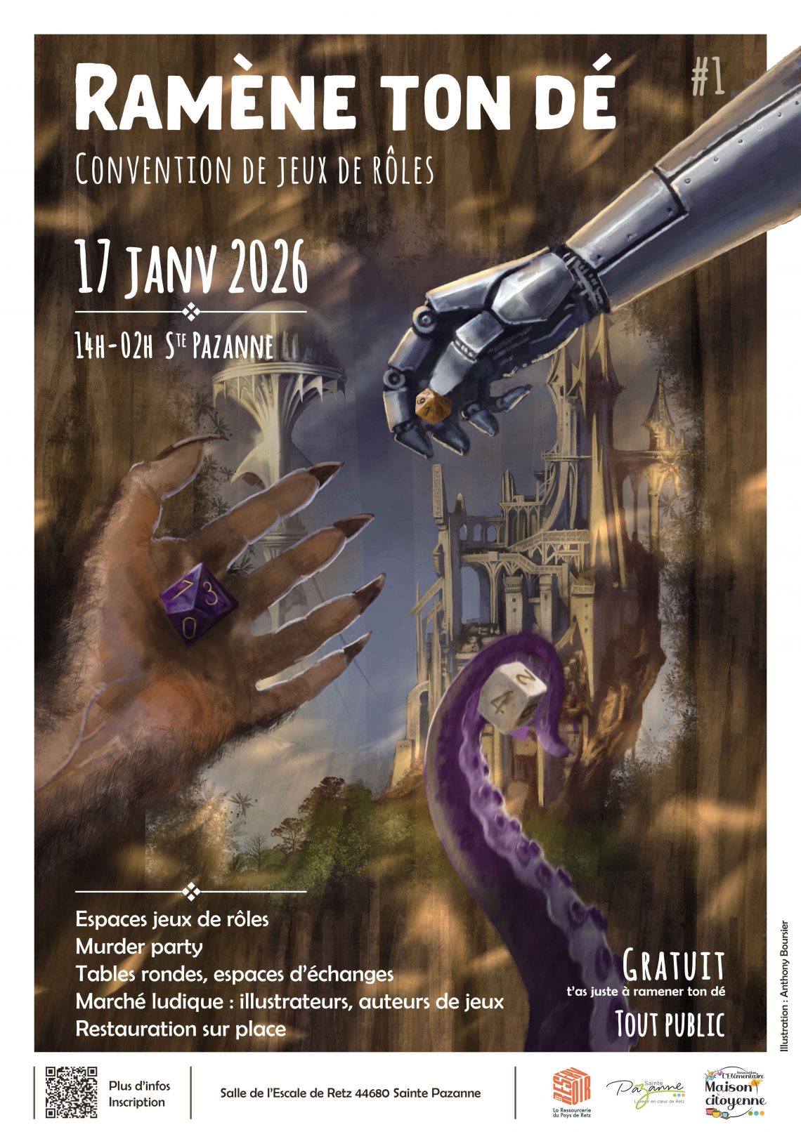 Actualités, Association jdr, convention, Ramene ton dé Ramène ton dé, 17/1/26 à St Pazanne (44) 29 octobre 2025 Une première pour cette convention qui souhaite réunir toutes les associations du coin.J’y serai bien sûr comme je l’espère de nombreux collègues et amis que j’ai contacté. Je proposerai de l’Elestria et de l’Elestria 2.0 évidemment. Précédent Les Utopiales, 30 oct - 2 nov 25, à Nantes Vous aimerez aussi Troll et légendes, Mons, 7-9 avril 2023 22 février 2023 Ultavia, Poitiers 7-9 mars 2025 16 janvier 2025 Aki Feu d’Enfer, actual play 4 novembre 2022 26 octobre 2022 Laisser un commentaire Annuler la réponseVotre adresse e-mail ne sera pas publiée. Les champs obligatoires sont indiqués avec *Nom * E-mail * Site web Enregistrer mon nom, mon e-mail et mon site dans le navigateur pour mon prochain commentaire. Commentaire Δ